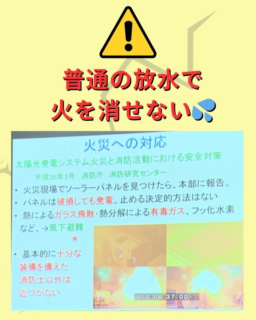 ❌一般人が自分で消そうとするのは絶対ダメ(自分家の屋根上のソーラーパネルであっても)